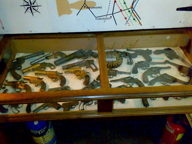 (Dozens of pistols and revolvers.)
